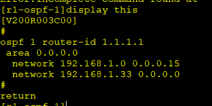 [r1-ospf-1-area-0.0.0.0]network 192.168.1.0 0.0.0.15