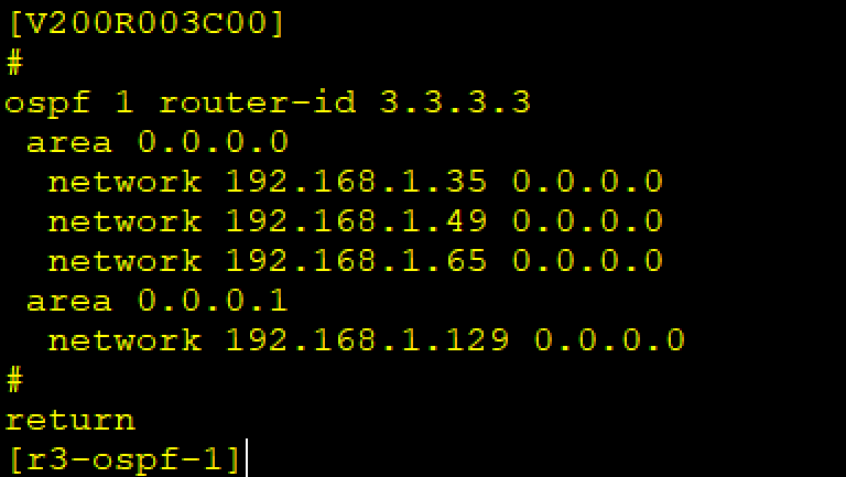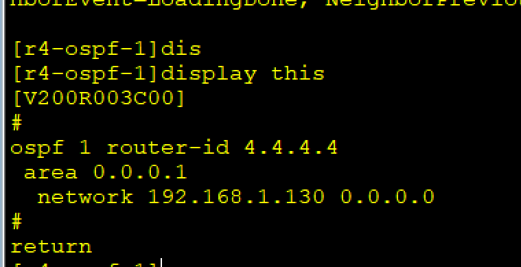 r4-ospf-1-area-0.0.0.1]network 192.168.1.130 0.0.0.0