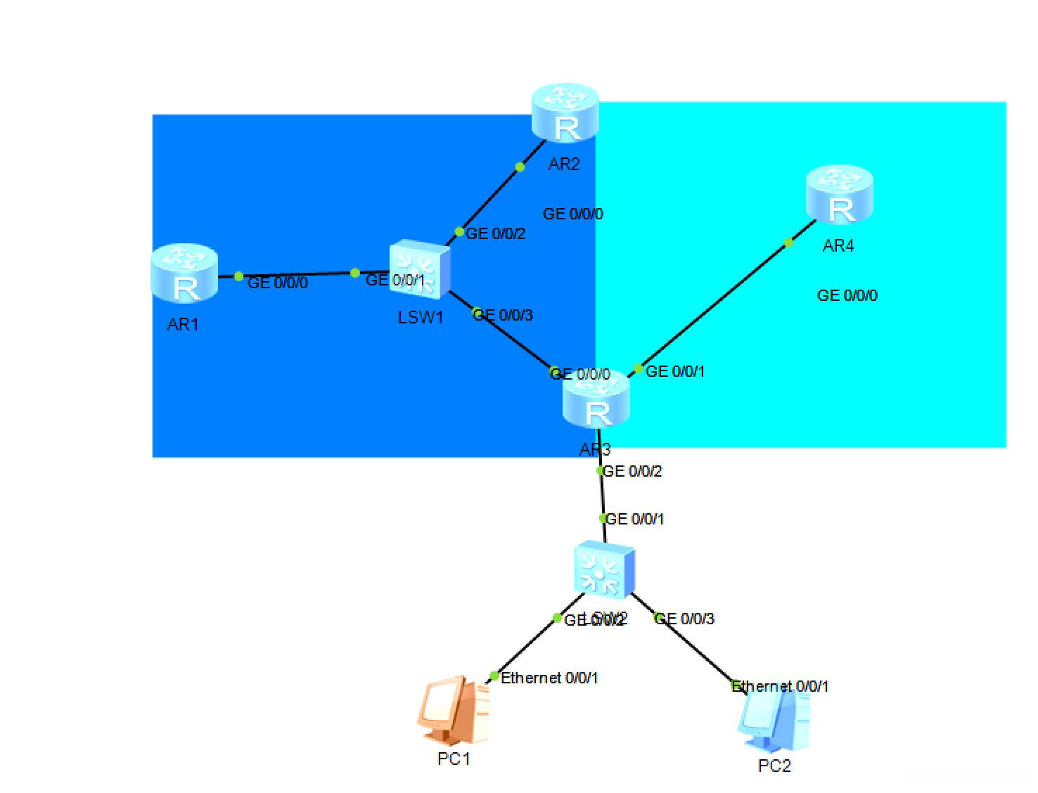 区域 0 包括节点 R1、 R2 和 R3 ,其中 DR 设备位于该区域内 。此外 ,节点 R3 的相关设备也连接到了该区域 。节点 R4 处的环路返回地址已固定设置 ,剩余网络段将采用固定的 IP 地址范围 192.168.1.0/24 进行合理规划 。需要注意的是 ,该处的环路返回地址不可配置 ,此网络下所有节点均可访问 ,通过此方法确保数据更新的安全性 ,避免出现环路问题 ,减少不必要的路由条目 。