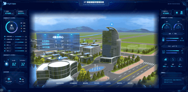 光伏储能在实际运行过程中容易受到天气、温度、湿度等多重因素的影响,导致光伏功率的间歇性和电网功率的随机波动。Hightopo 通过卫星图、现场取景的方式,进行场景搭建,数字孪生多环境场景下的光伏储能系统。融合储能设备,与环境数据、TN-S 供电系统数据对接,从而给负荷提供持续稳定的功率补给,提高系统工作效率与供电可靠性。