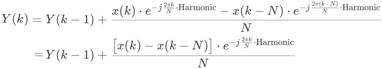 其中,X(k) 是第 k次谐波的复数;N为周期采样点数;x(n)为输入,n从0到N-1。