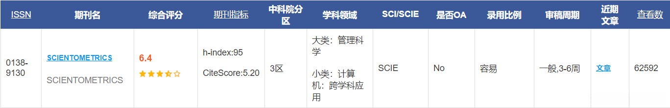发表在2020年的Scientometrics期刊,期刊概述如下图。