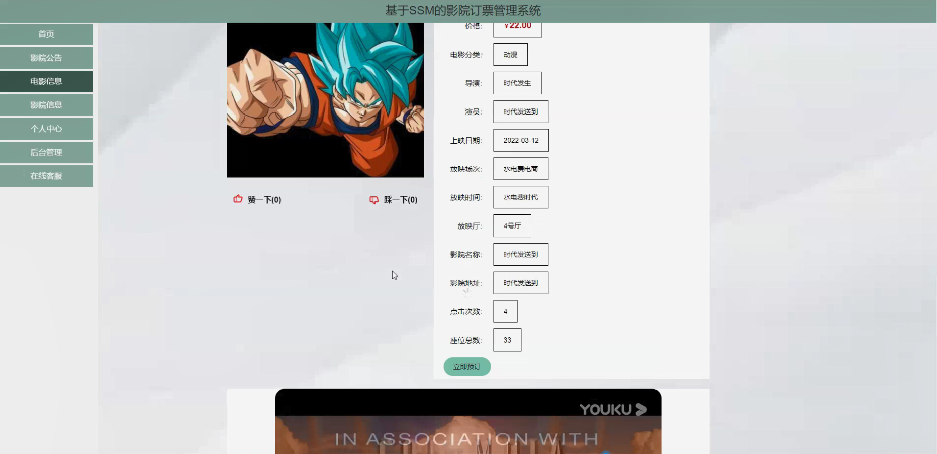 - 数据支持和分析:通过对用户行为数据的收集和分析,为影院提供数据支持和分析。