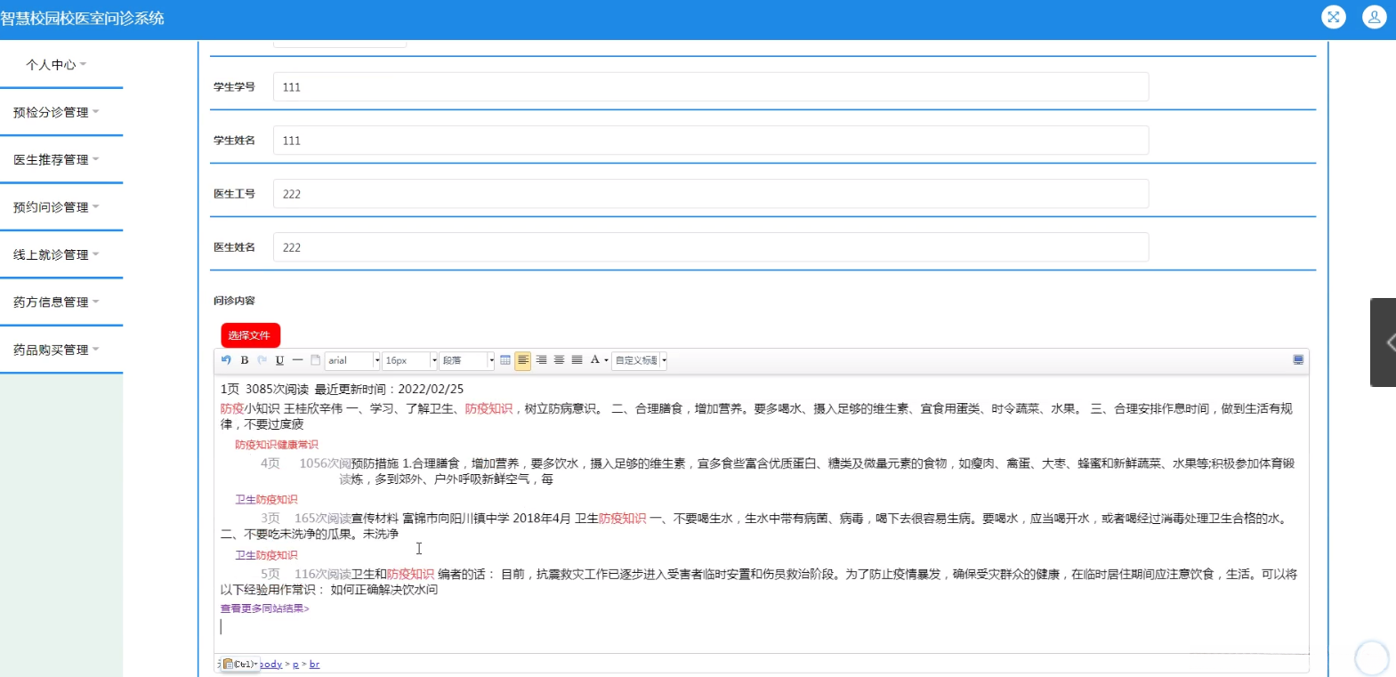 智慧校园校医室问诊系统(JSP+java+springmvc+mysql+MyBatis)