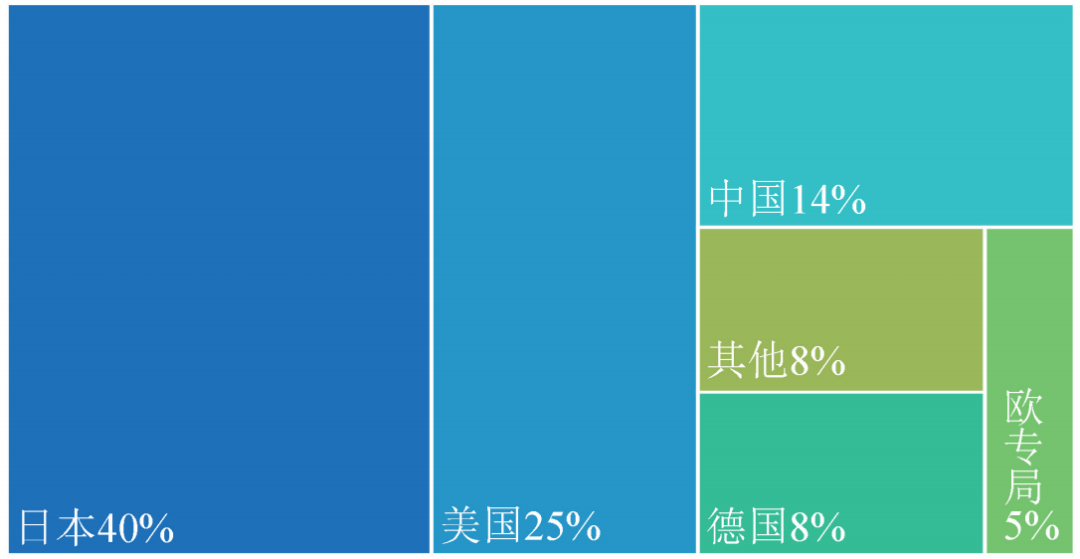 图3 主要目标市场的分布情况 1.3 全球专利申请人排名情况