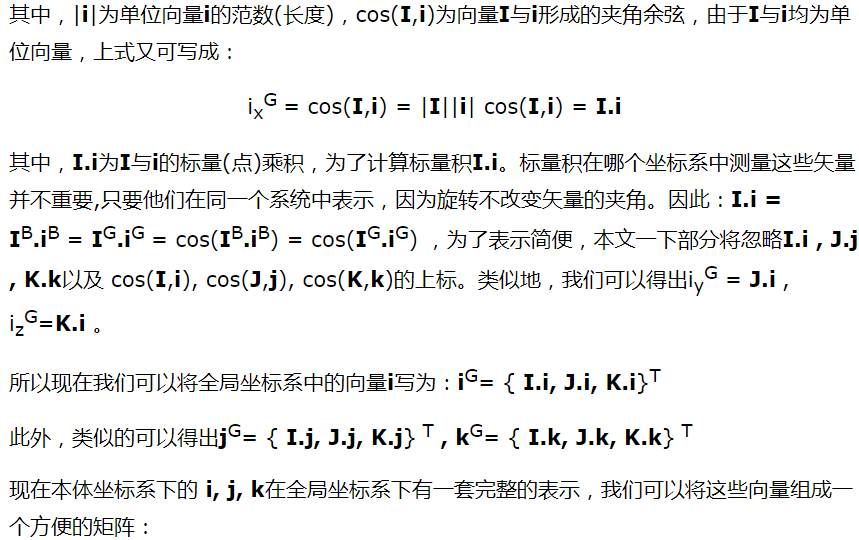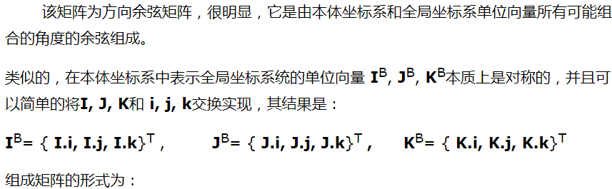 方向余弦表示姿态矩阵: