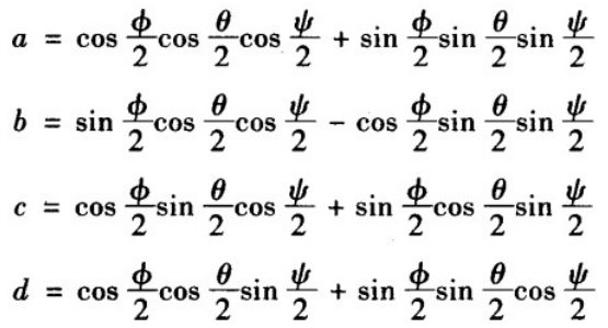 这里的四元数q0=a,q1=b,q2=c,q3=d,三者关系为: