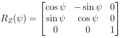 假设旋转前向量为X0, 旋转后坐标向量为X1,则X0 = Rz(Ψ) * X1 。
