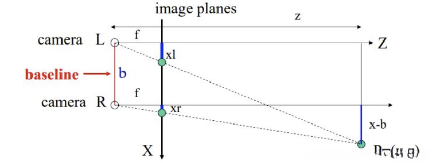 左右图像的“差异”到“深度”的转换,光学三角关系图 :