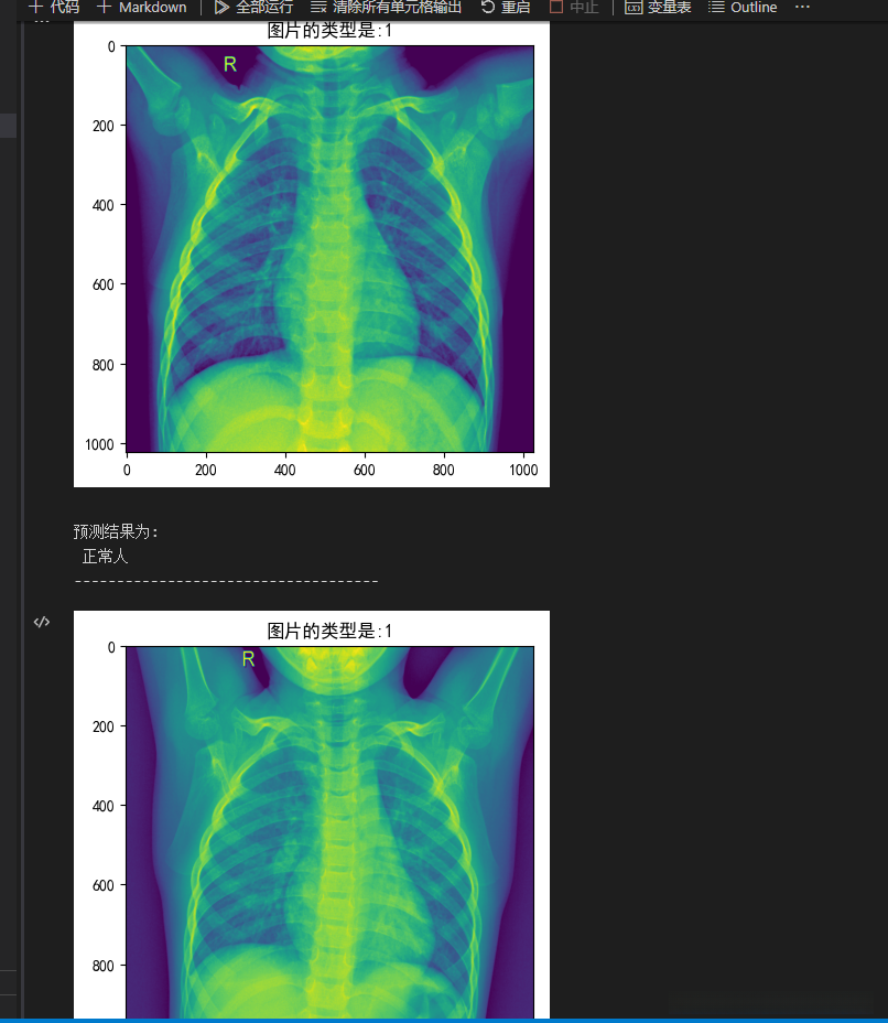 - 通过示例代码展示了如何从文件夹中加载一张胸透X光片并输出其所属类别及对应标签