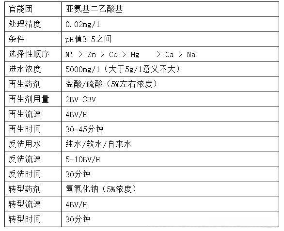 (如EDTA镍)。饱和吸附量大约在50g/l。
