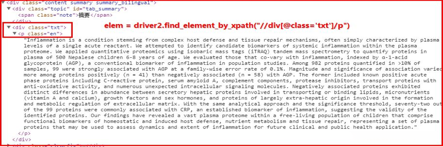 elem = driver2.find_element_by_xpath("//div[@class='txt']/p")
