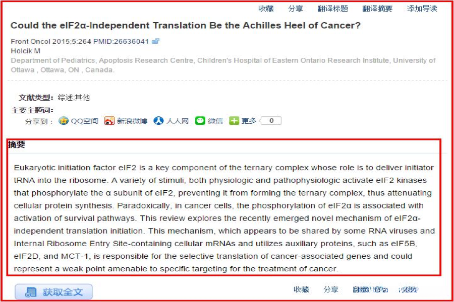 在PubMed中的一份文献通常会包含摘要部分、作者信息以及所属期刊的相关资料,并提供相关文献的链接和引用信息。这些功能帮助研究人员轻松地获取所需参考文献并跟踪最新研究进展。