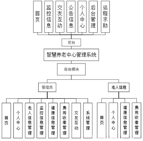 智慧养老中心管理系统服务于管理员和老人用户,主要需求如下: