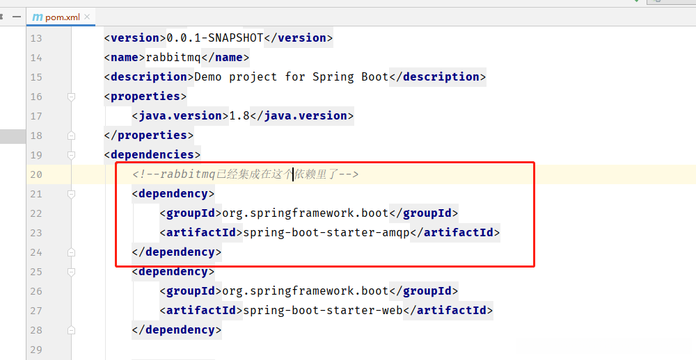 <artifactId>spring-boot-starter-amqp</artifactId>