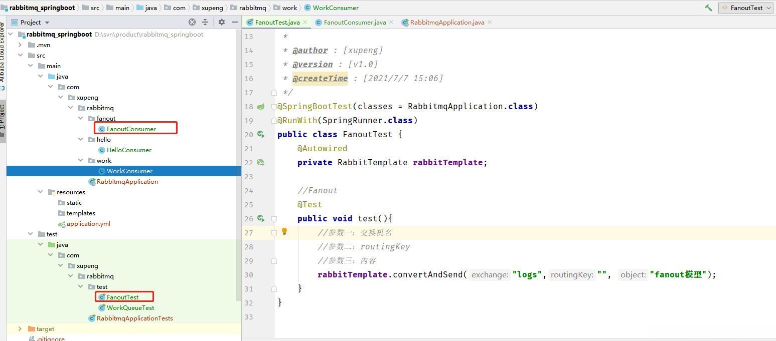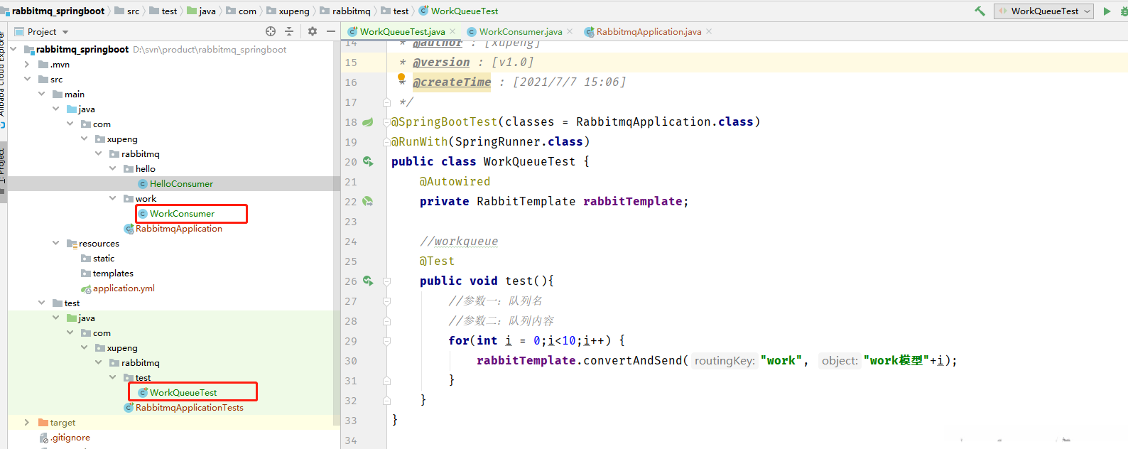 rabbitTemplate.convertAndSend("work", "work模型"+i);