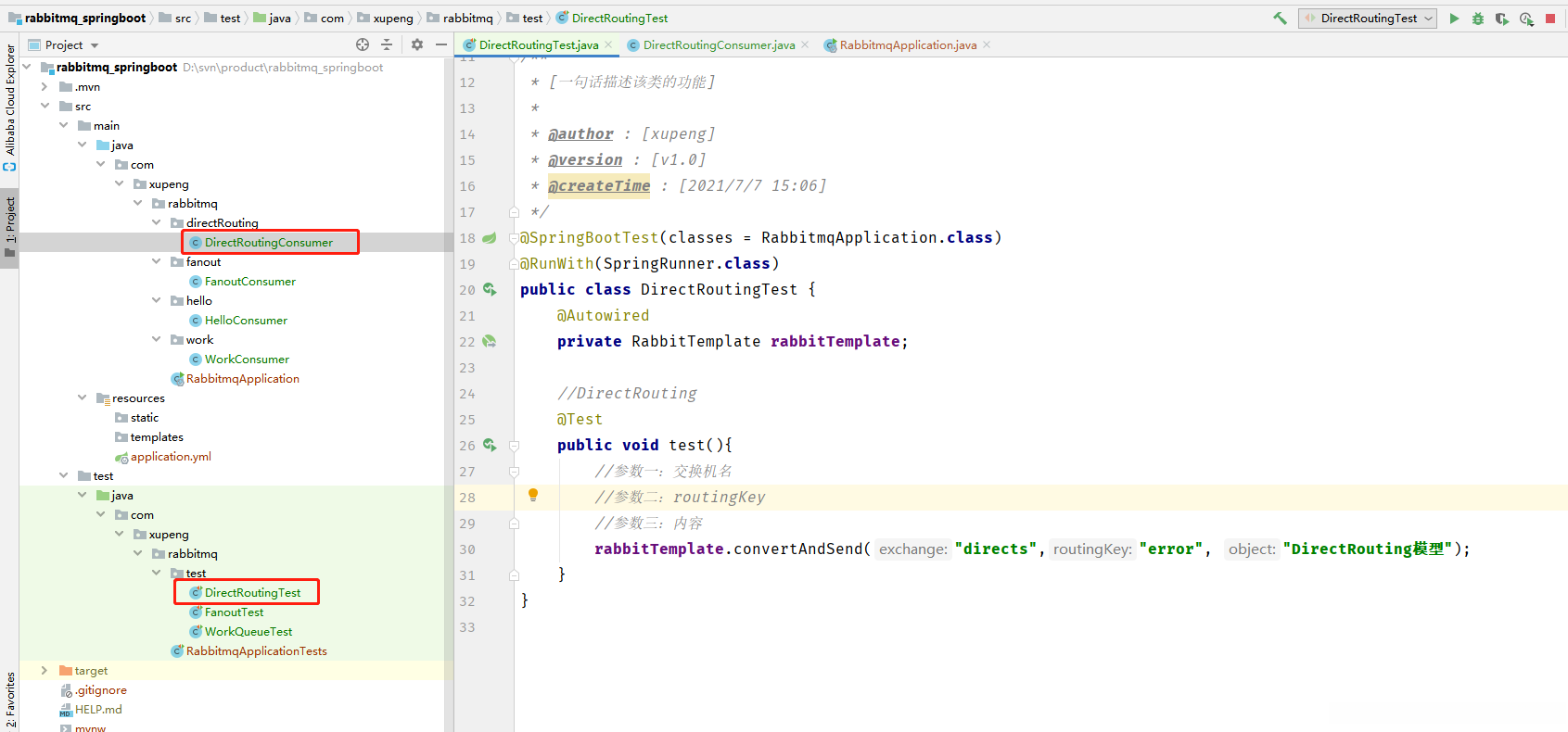 rabbitTemplate.convertAndSend("directs","error", "DirectRouting模型");