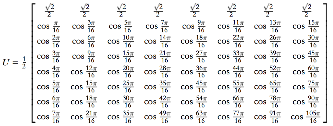 有这样一个矩阵的话,我们再进行DCT变换就非常简单了: