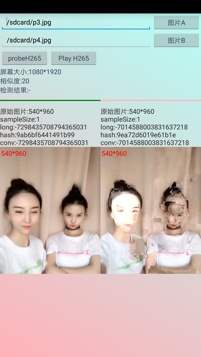 public native long getHash(Bitmap bitmap, int algorithm);public native long getHammingDistance(long hash1, long hash2);