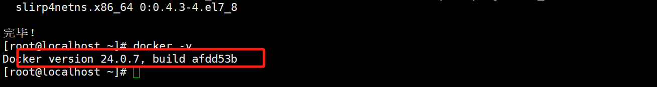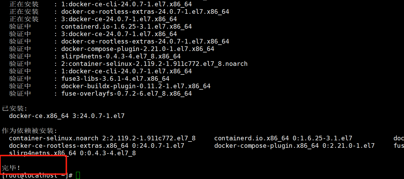 当出现以下代码后表示安装成功,其中24.0.7是docker版本号