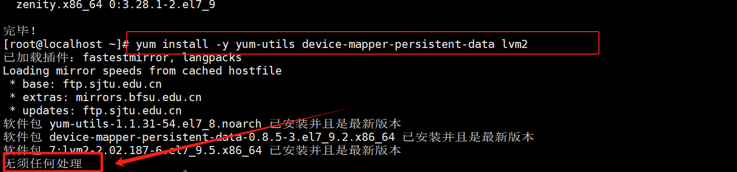 操作命令:yum install -y yum-utils device-mapper-persistent-data lvm2