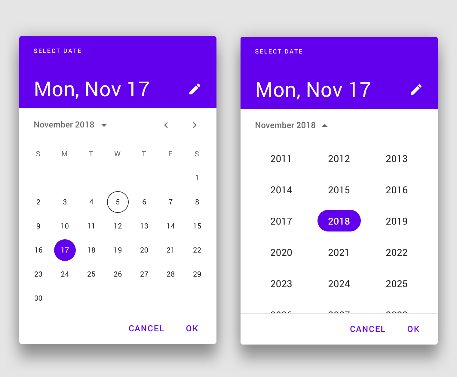 大家好,最近发布的新组件MaterialDatePicker确实是一个非常有用的工具。它完全符合材料设计准则(https://material.io/components/pickers/#usage)。这个新组件的一个独特功能是允许您轻松选择日期范围——无需像传统方式那样分别选择一个'从'和一个'到'日期。换句话说,在这种情况下您只需要点击一次即可完成日期选择:它可以作为DatePicker或是DateRangePicker使用。我对这一新功能感到非常兴奋,并希望将其应用在我的项目更新中以改善用户体验。可惜的是,在我的项目中我并没有找到任何关于如何使用这个新组件的教程或示例指导。因此我决定制作一个简短的文章来概述它的使用步骤:由于其操作十分简便所以我预计这篇文章会相当简短