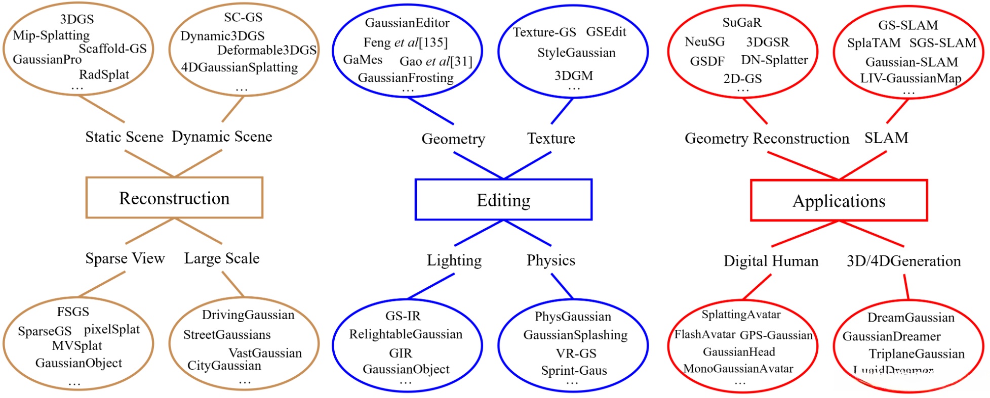 有代表性的研究工作基于3DGS表示在多个任务领域中展开