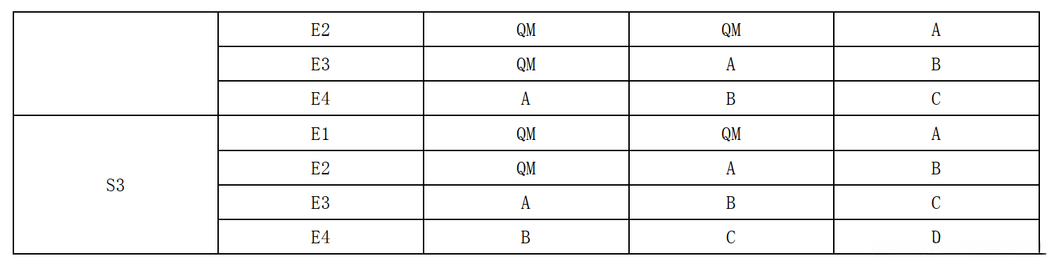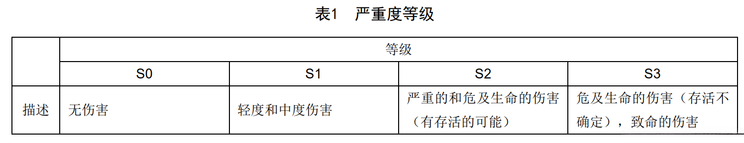 完成危害性评估后发现,在所有潜在的影响中仅存在物质层面的影响而无人员伤害风险时,则该类危害的风险程度应定评为S级。若某危害经评估确定其严重性等级达到S级,则无需进行ASIL级别划分。