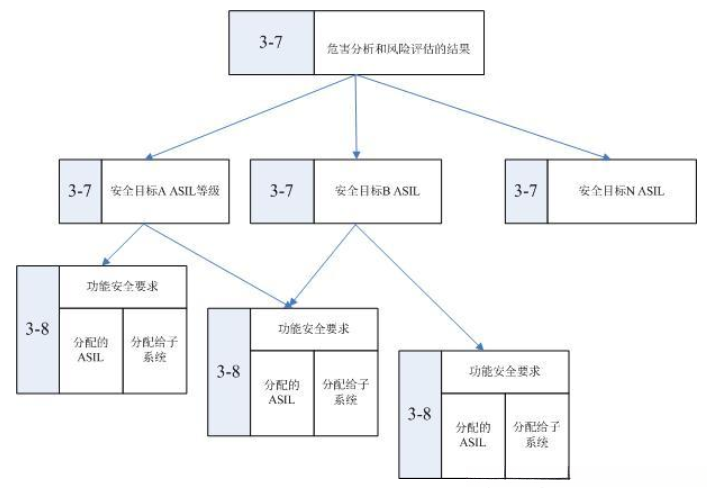 图3详细呈现了GB/T XXXX标准相应部分中安全要求的结构布局及其分布情况,并明确了功能安全要求在初步架构要素中的具体分配方案