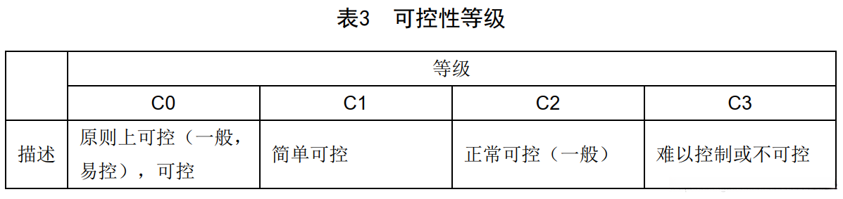 每个危害事件都需要依据明确的理由来评估受威胁人员对该事件的可控性。参照表 3为该事件的可控性分配一个C0、C1、C2或C3的等级。