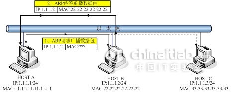 这是一个ARP欺骗过程的具体描述,在同一个网络环境中发生了这种情况需要注意的是,在B和C位于不同网络环境时上面的方法就不再适用