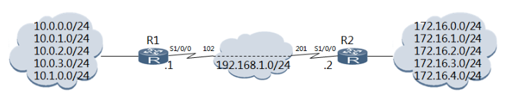 (4)R1已将10.X.X.0/24引入RIP,但是向R2仅发送10.0.0.0/16汇总路由,请用最少的配置命令进行配置,确保该聚合路由不能再通过接口S1/0/0学到。