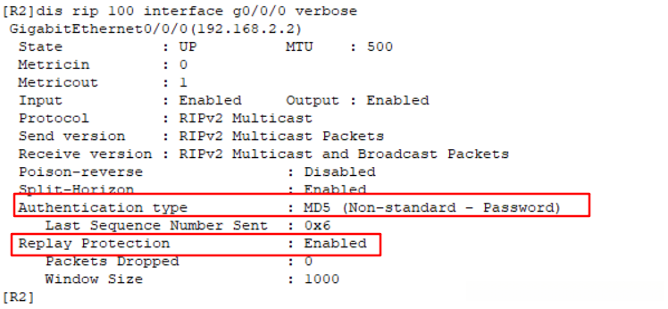 配置R2的MD5认证与replay-protect、RIP定时器: