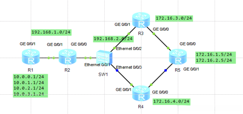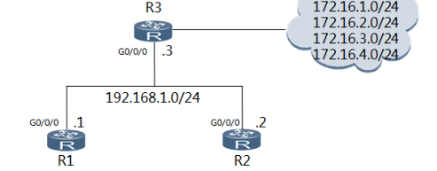(3)R1只接受172.16.0.0/24、172.16.1.0/24、172.16.2.0/24、172.16.3.0/24这四条路由