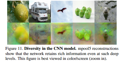 CNN模型的多样性,都是mpool5中feature的重构,表明CNN在很深的网络后仍保持了丰富的信息。