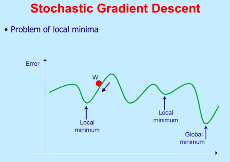 SGD 帮助我们避免局部极小值问题。它比梯度下降快得多,因为它一次运行每一行,并且不需要将整个数据加载到内存中进行计算。