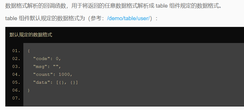 layui在渲染表格时,对接收到的数据有一定的格式要求,详情如下