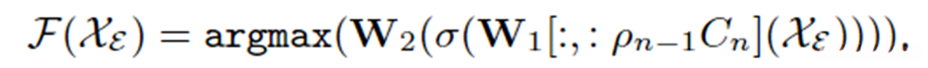 如图所示,门函数的作用是将输入信号x依次经过池化层,并通过两层全连接网络处理后,在最后一步使用argmax操作将其转换为one-hot编码表示。