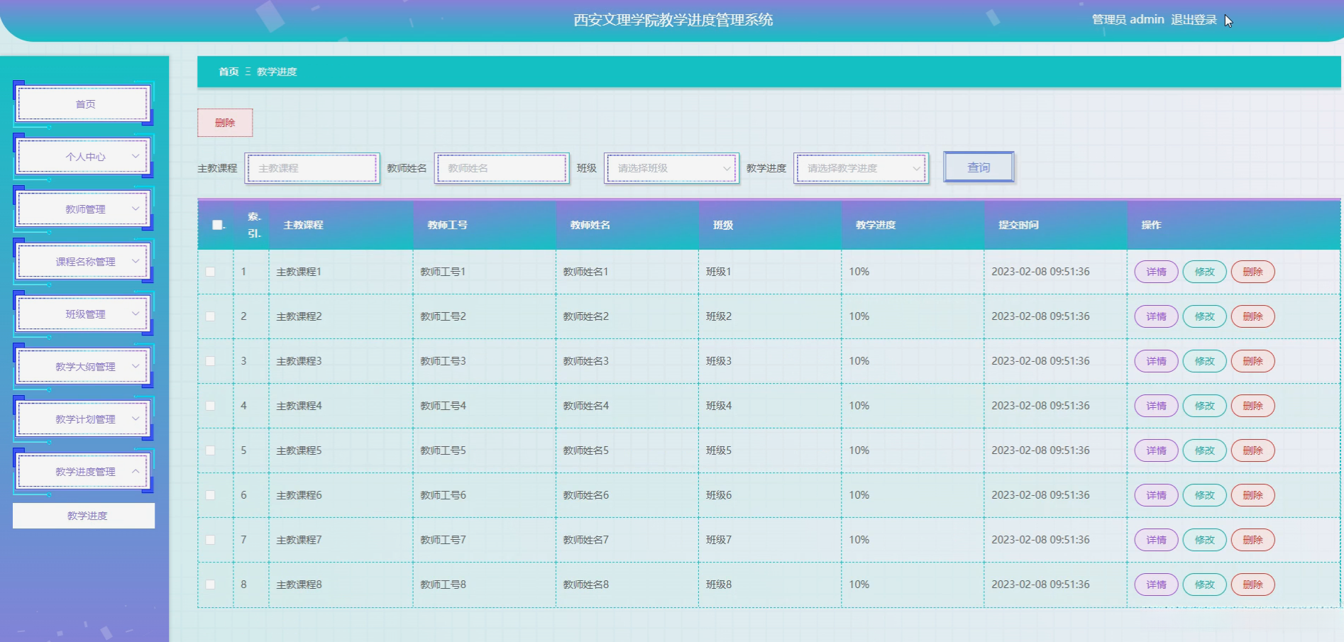 java+vue计算机毕设西安文理学院教学进度管理系统【源码+开题+论文】