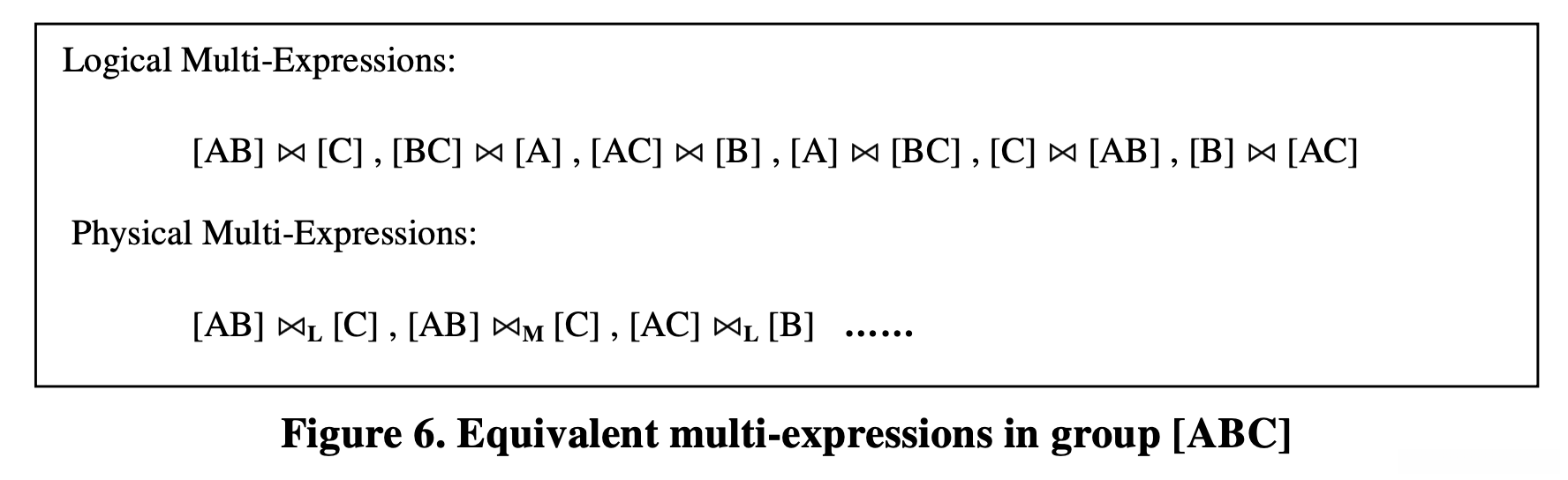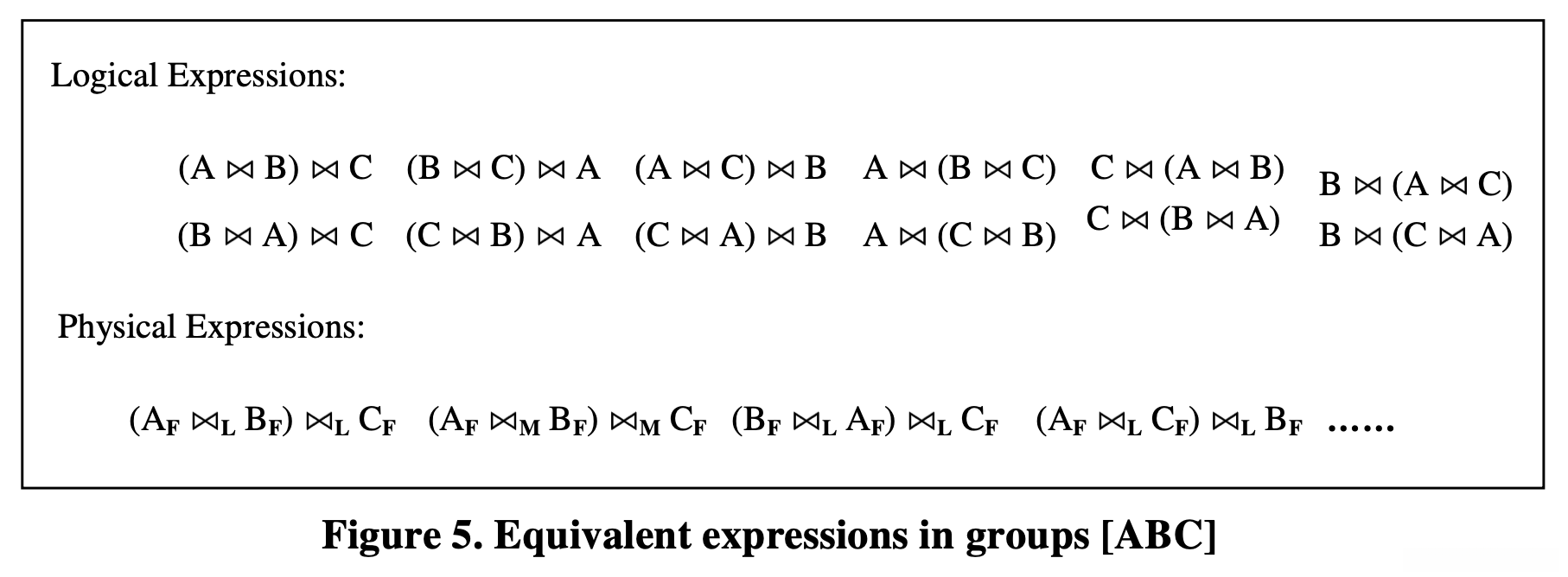 在进行优化时,在每一个组中都会创建大量逻辑等价的 logical 和 physical 表达式以显著地扩大搜索范围。