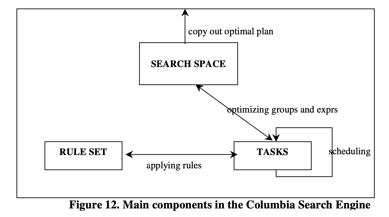 采用Cascades优化框架构建的Columbia自顶而上的优化方案,在对搜索空间结构与搜索算法进行细致重构后,使得自顶向下的优化方案更加简洁明了。