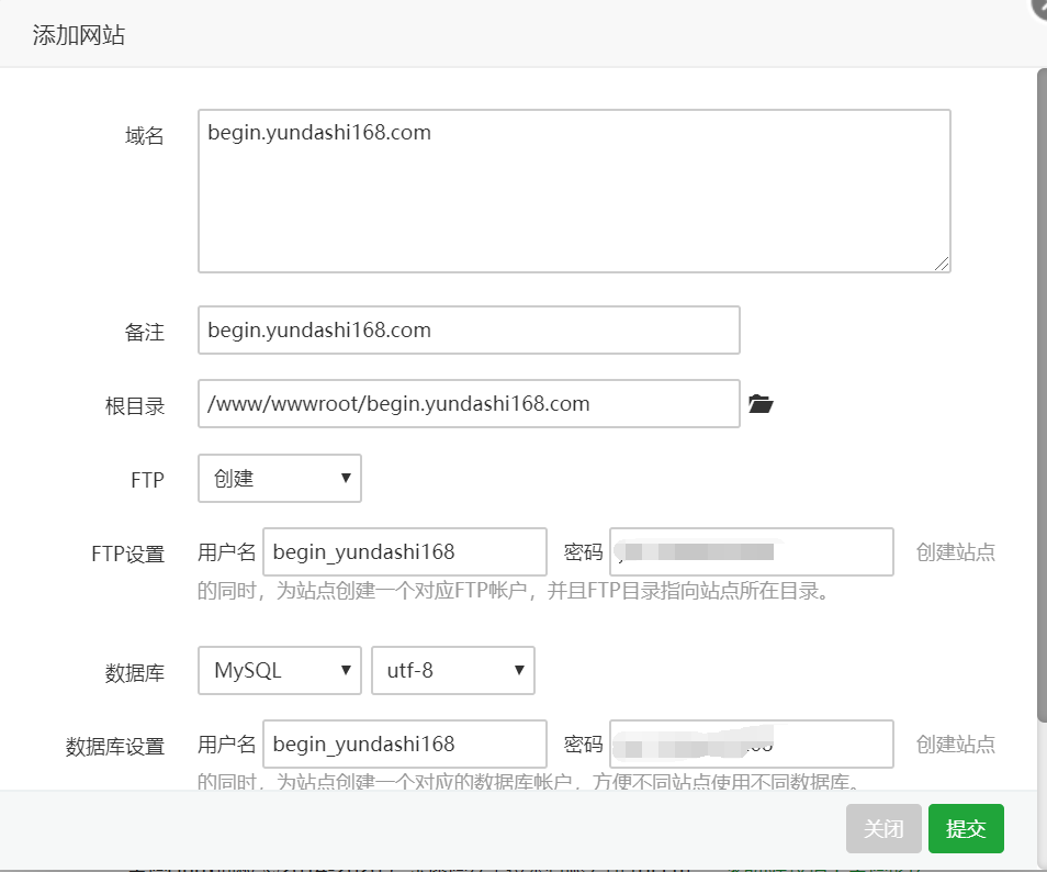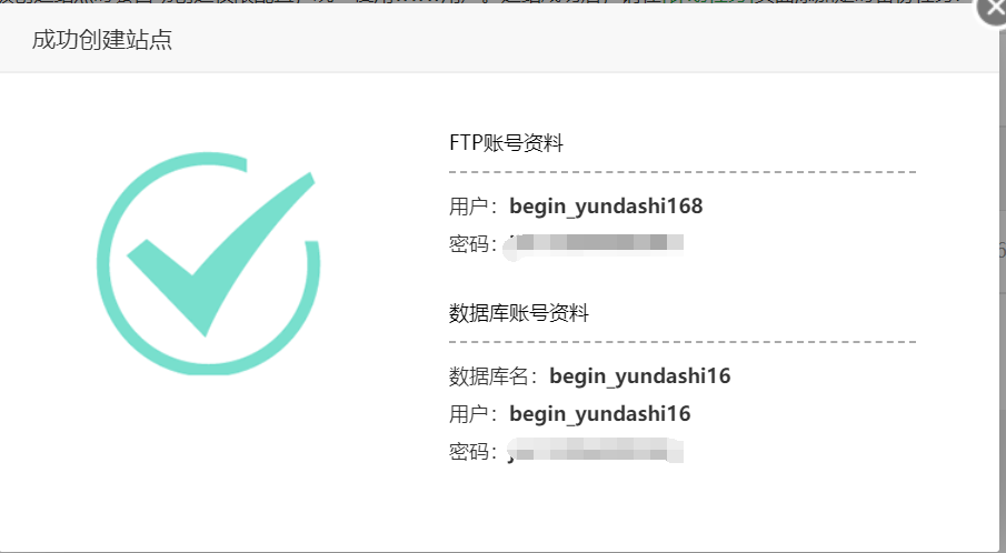 添加站点成功!FTP和数据库的用户名和密码你记不住也无所谓,反正可以随时修改的。