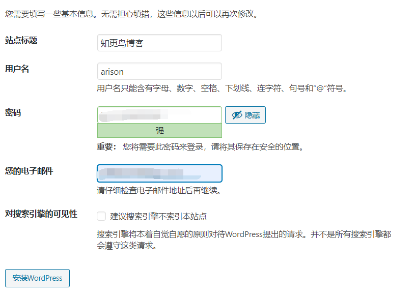 上一步已经把站点的IP地址和二级域名绑定了。这一步直接访问域名来在线安装Wordpress.