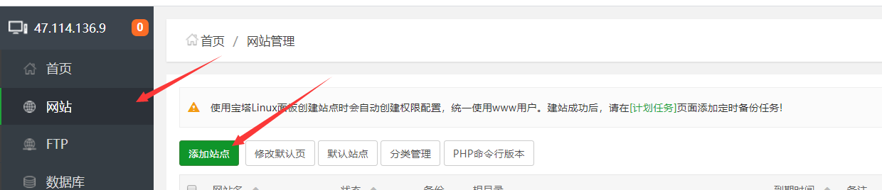 #温馨提示:如果你打算用公网ip地址访问你的站点,这里就不能填写域名,直接写服务器的公网ip地址。