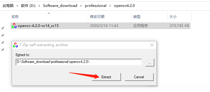 一、将下载的opencv-4.2.0-vc14_vc15解压到自己想存放的目录。