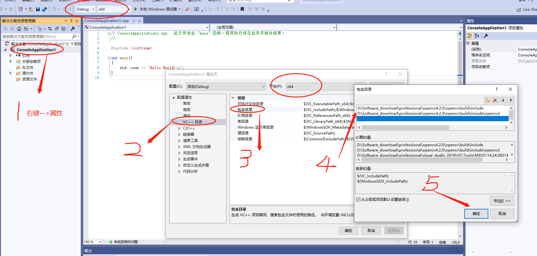 点击项目名右键-->属性-->VC++目录-->包含目录-->复制粘贴-->确认。