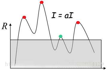 非极大值抑制原理是,在一个窗口内,如果有多个角点则用值最大的那个角点,其他的角点都删除,窗口大小这里我们用3*3,程序中通过图像的膨胀运算来达到检测极大值的目的,因为默认参数的膨胀运算就是用窗口内的最大值替代当前的灰度值。