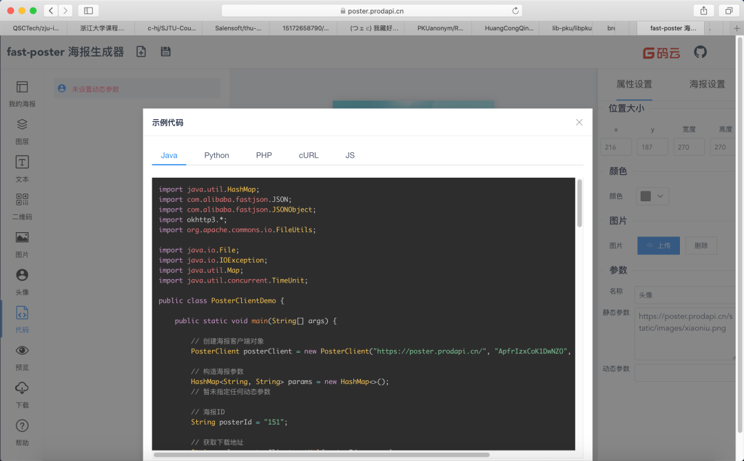 动态: 无需更改代码,直接在编辑器修改海报即可获得最新的海报。
