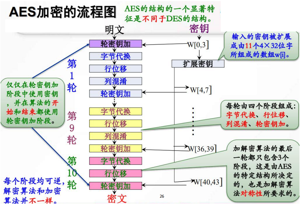 轮密钥加:根据输入密钥得到w[0]、w[1]、w[2]、w[3],作为扩展密钥的基础。