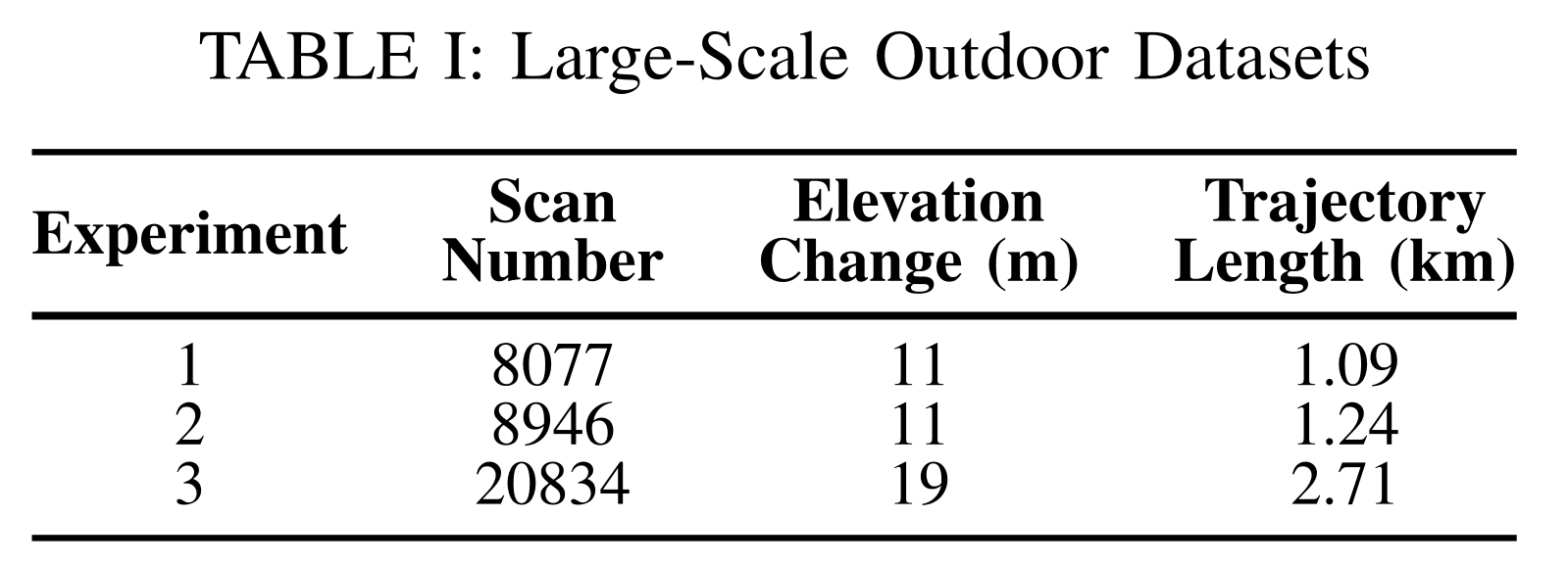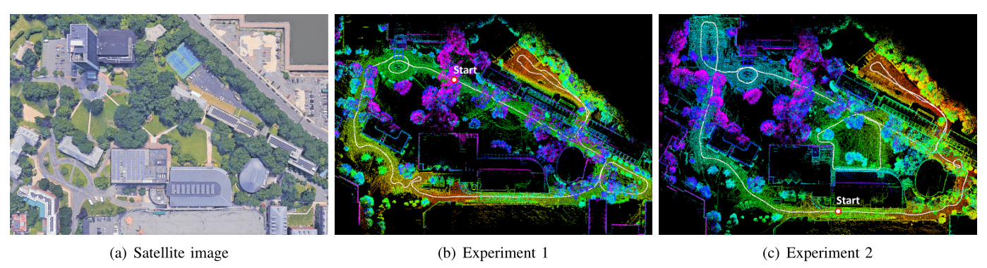 接下来,在三组大规模数据集上对比LOAM与LeGO-LOAM算法表现情况,并将其统称为实验1至3
